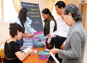 Tác giả ký tặng bạn đọc mua sách góp quỹ xây dựng học bổng