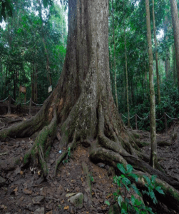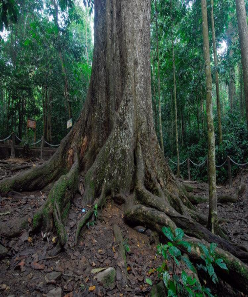 Rừng nguyên sinh có nhiều chủng loại cây, tầng cao, tầng trung, tầng thấp và có nhiều chủng loại dây leo đeo bám trên thân cây. Tất cả thừ gì không cần nữa, chúng thải rơi xuống mặt đất, hình thành thảm thực vật, vừa giữ độ ẩm vừa làm phân bón cho cây/dây.