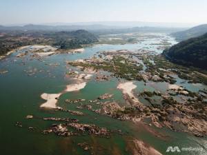 Mekong khổ sở vì mực nước thấp và có màu xanh hồi cuối năm ngoái vì mất phù sa.