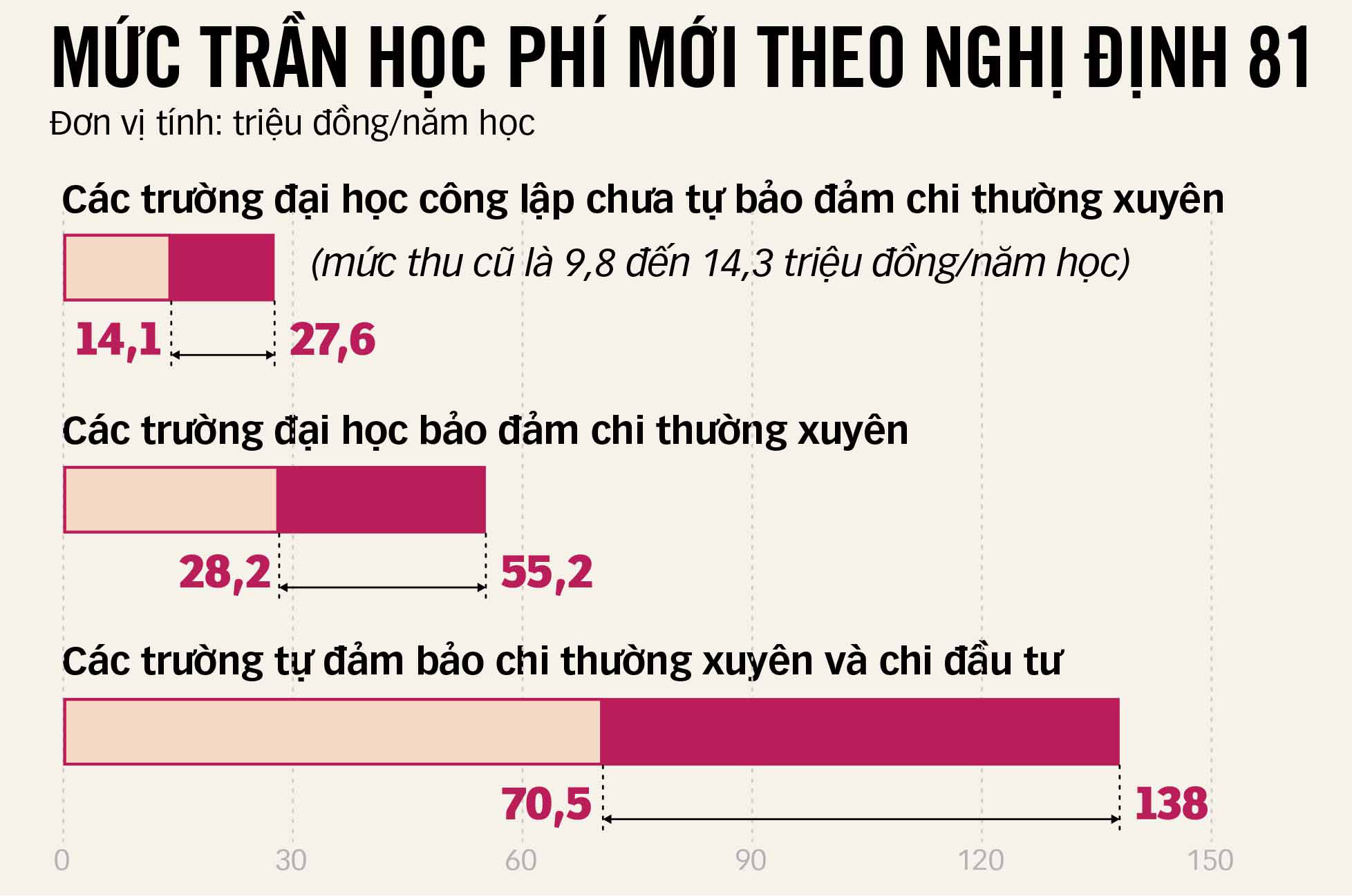 Nghị định 81 cho phép từ năm học 2022 – 2023 các cơ sở giáo dục công lập được tăng học phí theo lộ trình, nhưng do ảnh hưởng của dịch COVID-19, Chính phủ đã yêu cầu giữ ổn định học phí trong hai năm học vừa qua.