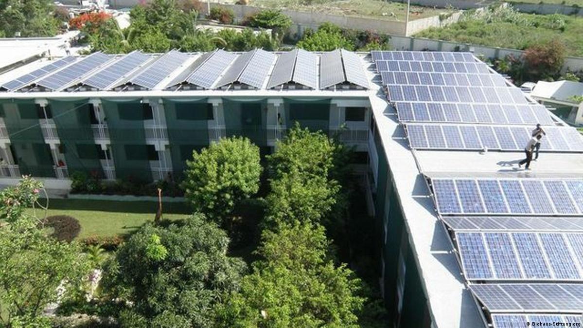 This hospital in Tabarre, a suburb of Port-au-Prince, Haiti, is powered by this rooftop solar installation. At 710 kilowatts, it is the largest in the country. Coronavirus patients are cared for here, and all medical equipment runs on solar power. Thanks to the system, around €50,000 ($59,000) is saved on diesel power every year.