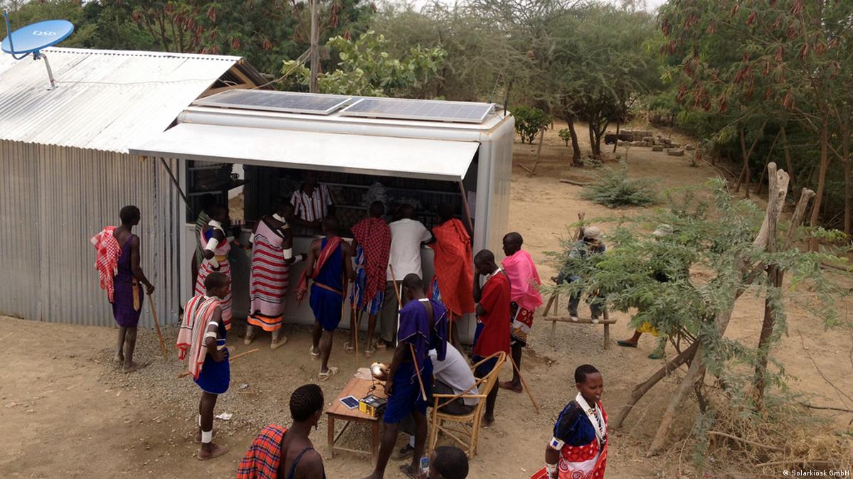 Most people in rural regions in East Africa have no access to the power grid. Increasingly, popular solar kiosks like this one in Olkiramatian, Kenya can provide electricity. For a small fee, the solar power from the roof is used to charge cellphones, for example. In this way, people can stay in touch, make money transfers by phone or check the market prices for their vegetables.