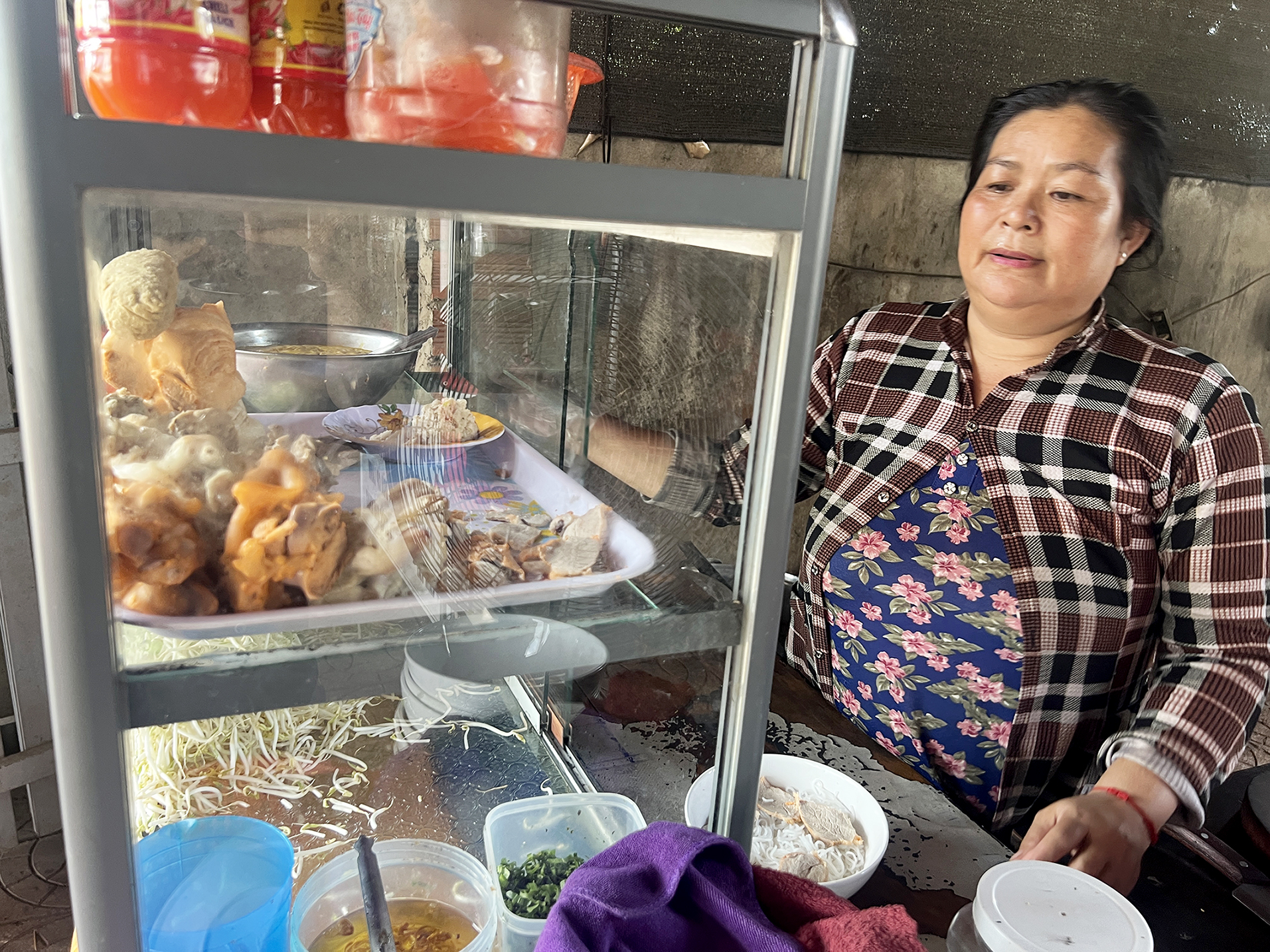 Cũng trên thị trấn Tân Châu, chúng tôi gặp được chị Lê Thị Diên (47 tuổi), từng là người dân xóm Việt kiều Campuchia ở ấp Tà Dơ. Nhưng nay chị đã có nhà mặt đất khang trang, có quán bún riêu ngay mặt tiền đường lớn.