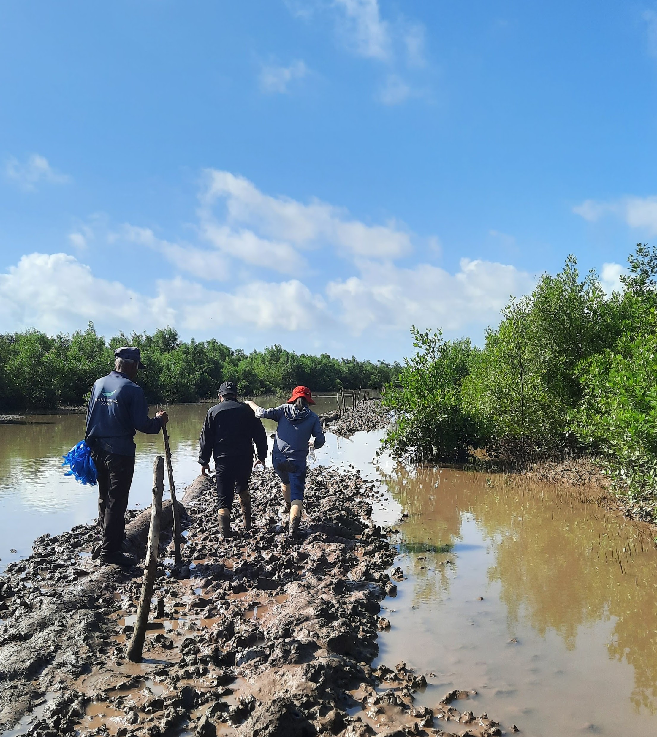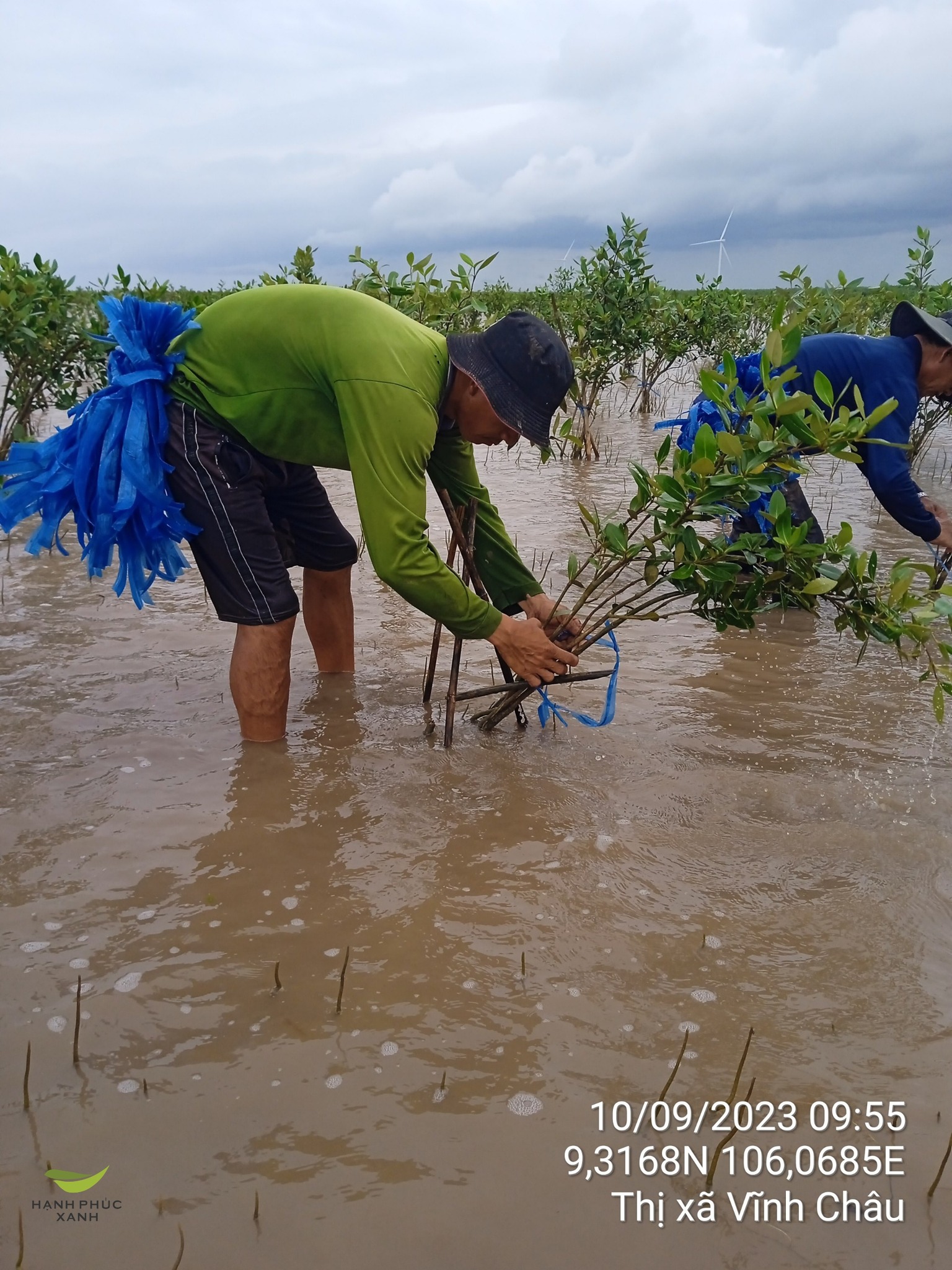 Chia sẻ với các bạn, hình ảnh những cây mắm ở dự án rừng ngập mặn tại Sóc Trăng mình có đi khảo sát và đo đạc hồi tháng 8, 2023. Trồng rừng gian nan lắm. Mình lội bùn lầy không quen, phải bám vào kiểm lâm người địa phương lôi mình đi theo mà vẫn còn ngã lên ngã xuống. (Hình 1, 2).