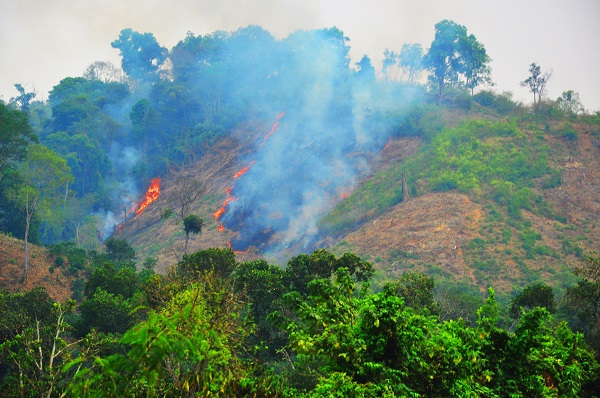Dân đốt rừng dọc QL27 để lấy đất gieo trồng