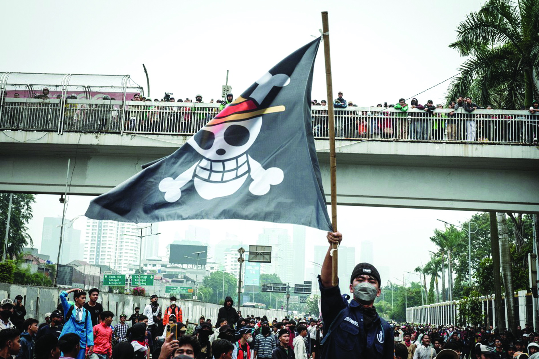 Lá cờ của Luffy Mũ Rơm xuất hiện ở Indonesia. Ảnh: AFP