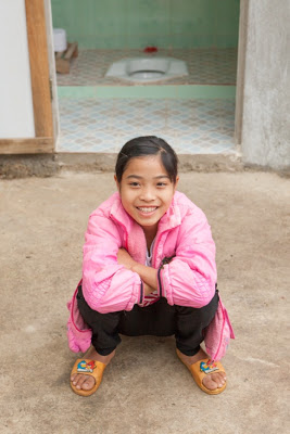 Em đã từng đi xuống sông”, cô bé 12 tuổi cười khúc khích. “Chúng em đã không có nhà vệ sinh và thậm chí còn không biết nó là gì. Nhưng thực sự, em không ngại phải làm như thế. Tất cả mọi người trong bản đều xuống đồi để đi vệ sinh ở bờ sông: nên không ai lấy làm xấu hổ! Vào mùa mưa, điều đáng lo là đường đồi trở nên trơn hơn và chúng em phải cẩn thận từng bước chân để không bị ngã”.